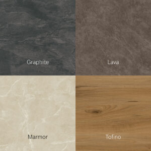 verfügbar und ergänzen unser Portfolio um vier exklusive Designs. Die Dekor-Optiken Lava, Marmor, Graphite und Tofino bringen eine moderne Ästhetik ins Wohnambiente – und können als Muster ab Ende April zu Ihnen versendet werden.